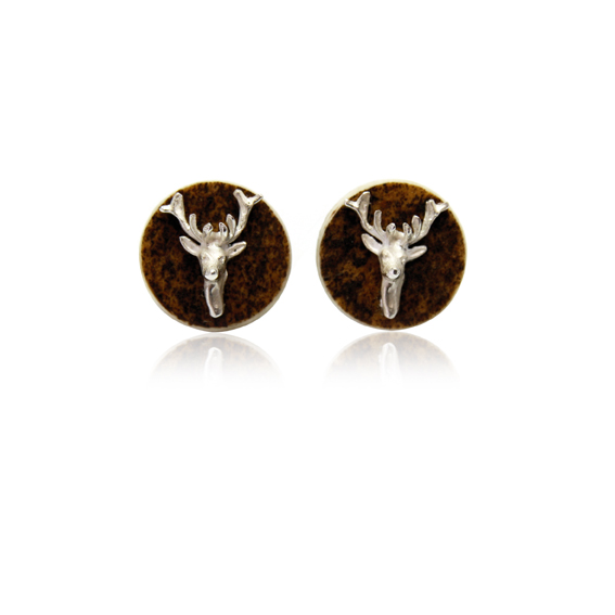 Auf der kleinen Dammwildscheibe thront eine Hirschtrophäe.