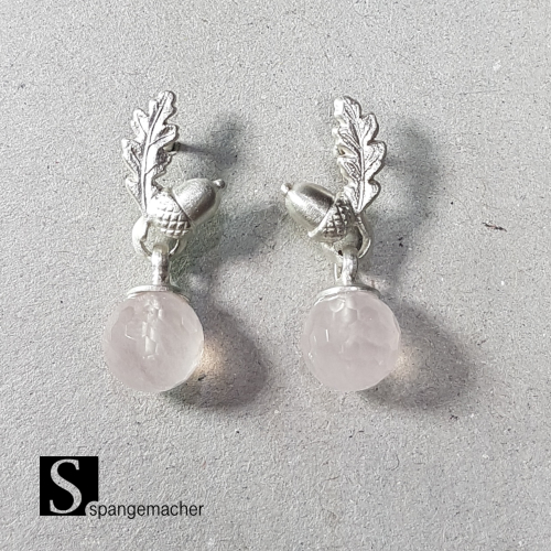 Darunter baumeln facettierte Rosenquarzkugeln.