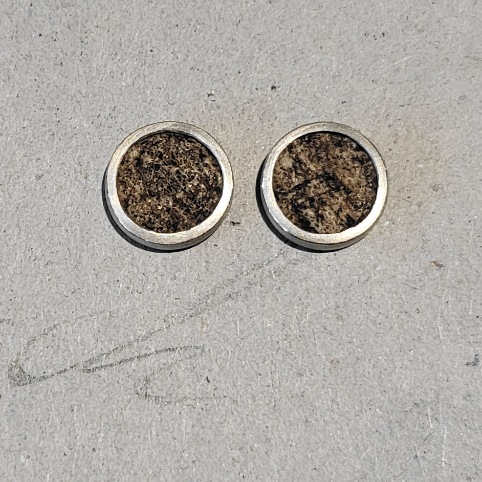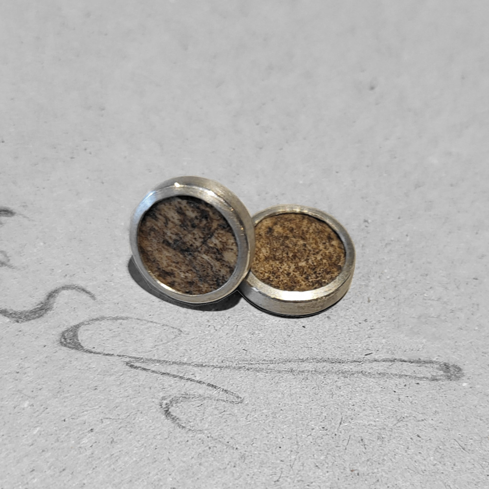 Diese Hornscheiben setze ich in eine Silberfassung ein und fasse diese dann auch.