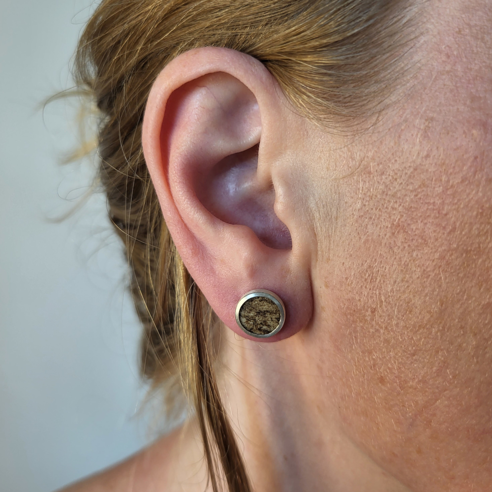 Hier handelt es sich um ganz schlichte Ohrstecker die aber durch die Hornscheiben