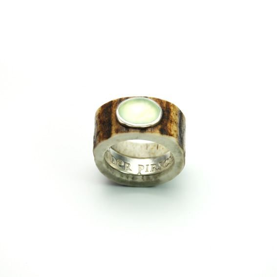 Hornring aus den abwurfstangen vom Rotwild, Phrenitcabbochon, 925 Ag