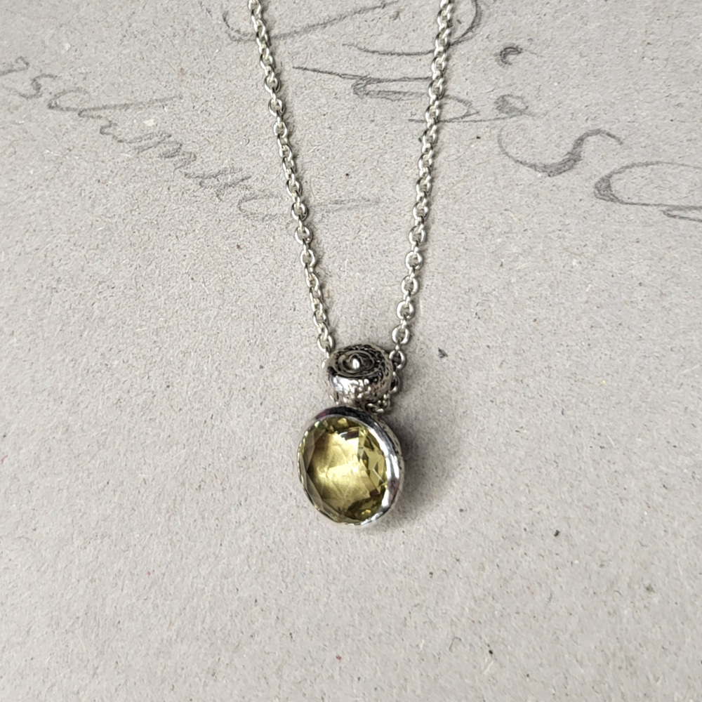 Hier wieder eine wunderschöne Kette für die Waldliebhaber. In dem Eichelkäppchen ist ein leuchtender Lemoncitrin gefasst.