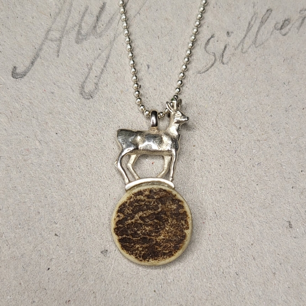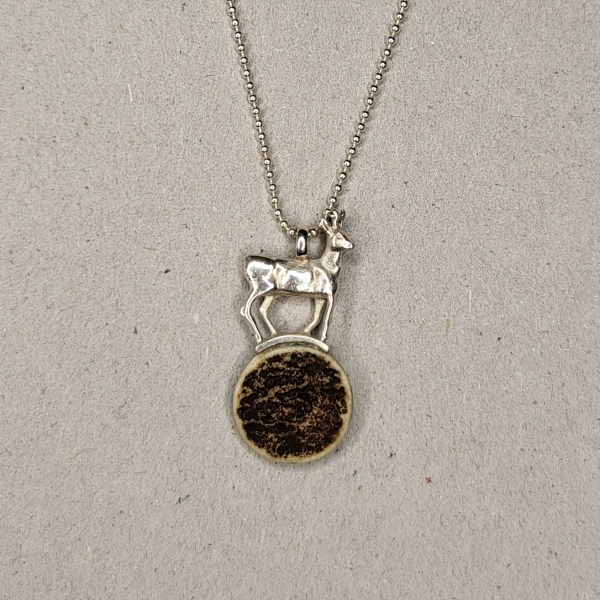 Der Rehbock verharrt bei diesem Anhänger auf einer Hornscheibe vom Dammwild. Der Anhänger wird inclusiv Kugelkette geliefert