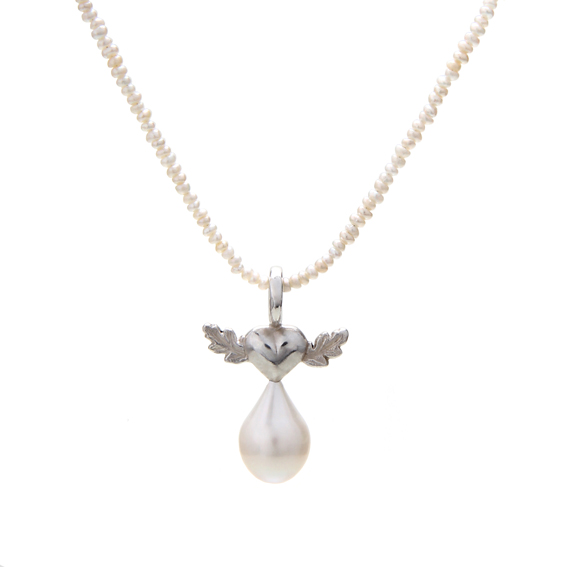 Anhänger mit Herz und Süßwassertropfen sind fest verbunden mit der Süßwasserperlenkette
