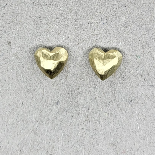 Diese süßen Herzchenohrstecker passen immer zu jedem Anlass. Sie sind klein und zierlich und sind ganz besonders dadurch das die Oberfläche nicht klassisch glatt poliert ist. Man sieht noch die Bearbeitung des Herzen. Teilweise erkennt man noch leichte Feilspuren und die Facetten lassen das Herzchen im richtigen Licht erstrahlen. Hier sind die Handarbeitsspuren bewußt Gestaltungselement.