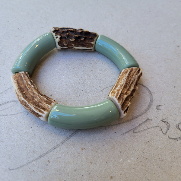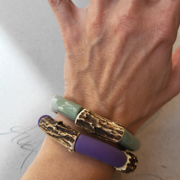 Dieses Zusammenspiel von Geweihstücken und farbigen Kunststoffelementen wirkt frisch, modern, sportlich und sehr wertig.