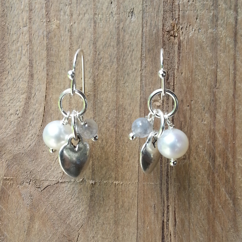 Ohrhänger versilbert mit Süßwasserperle und Grauquarz.