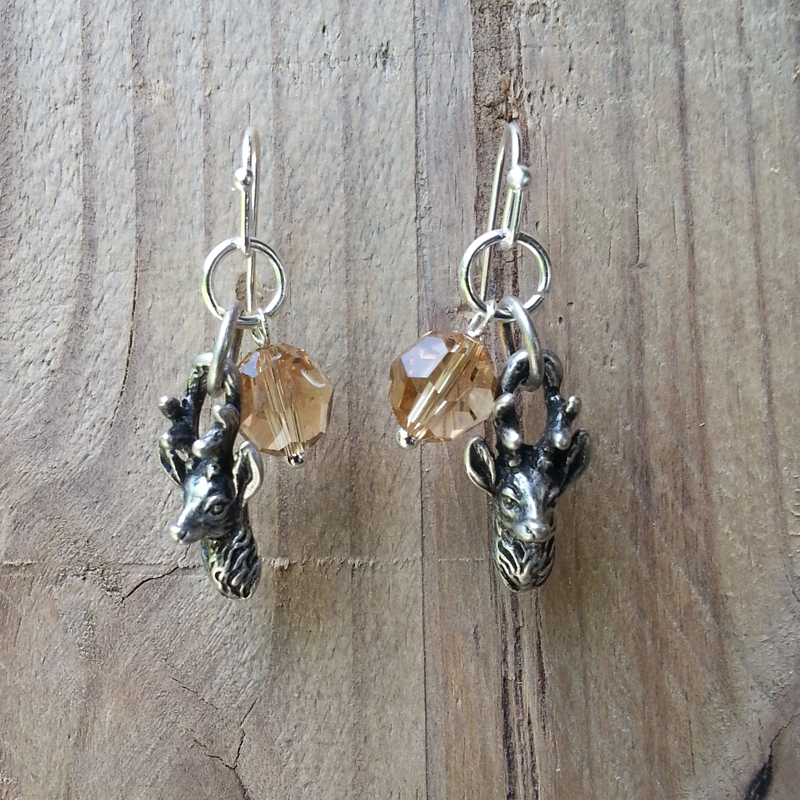 Ohrhänger versilbert mit Rehbock und Swarovskikristall. Den Kristall können Sie in der Farbe Ihrer Wahl bestellen.