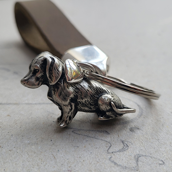 Ergänzt wird der Dackel durch ein kleines Herz, das dem Schmuckstück eine persönliche und herzliche Note verleiht.
