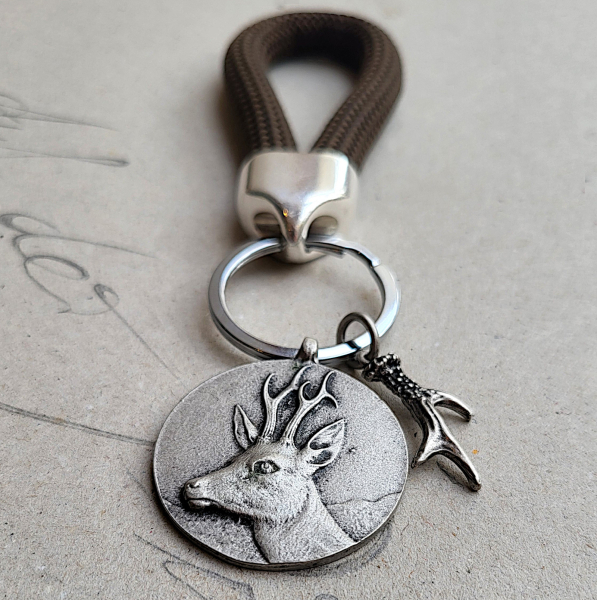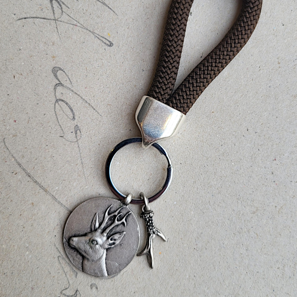 Dank der stabilen Schlaufenform lässt sich der Anhänger bequem greifen oder – wenn gewünscht – auch über einen Taschenriemen ziehen. Ein schönes Accessoire für Menschen, die gerne draußen unterwegs sind, die Natur lieben oder ein kleines Geschenk für Jägerinnen und Jäger suchen.