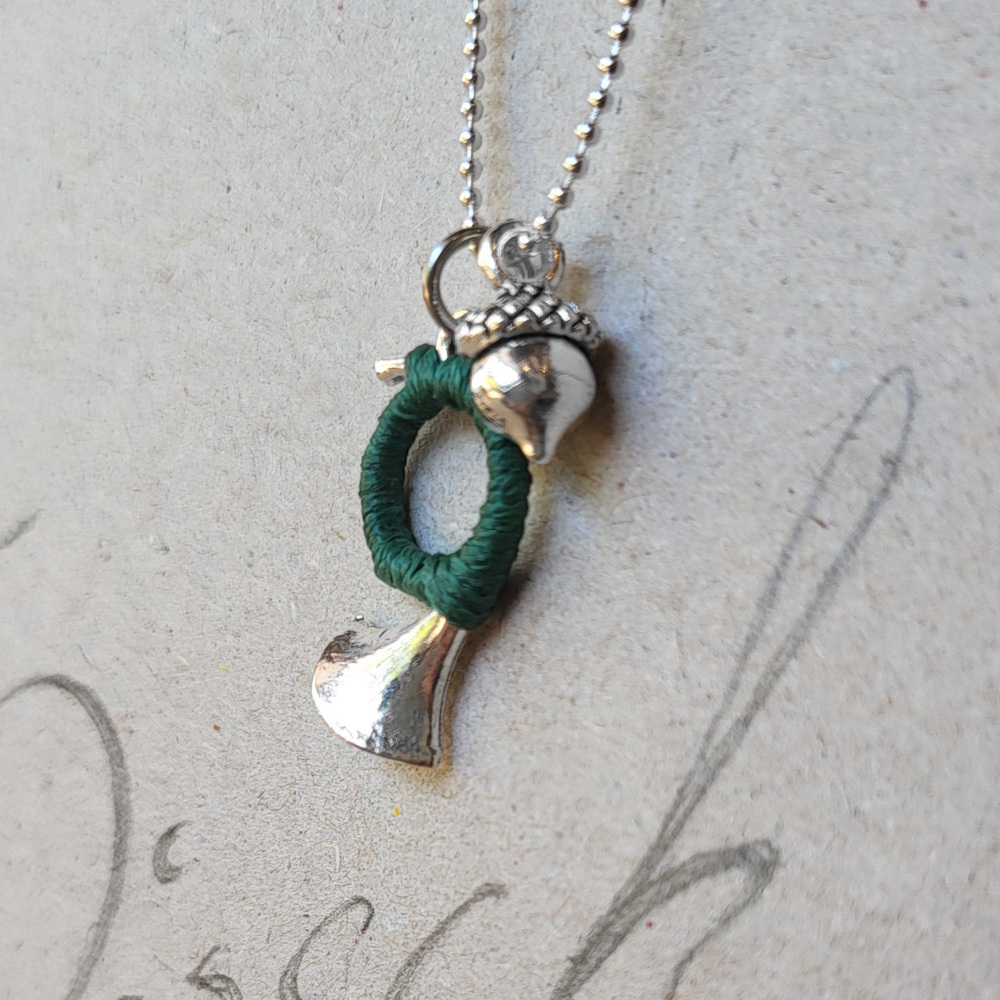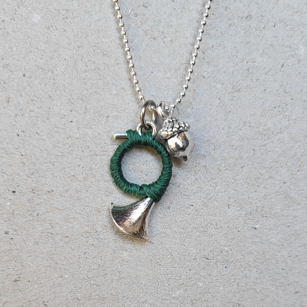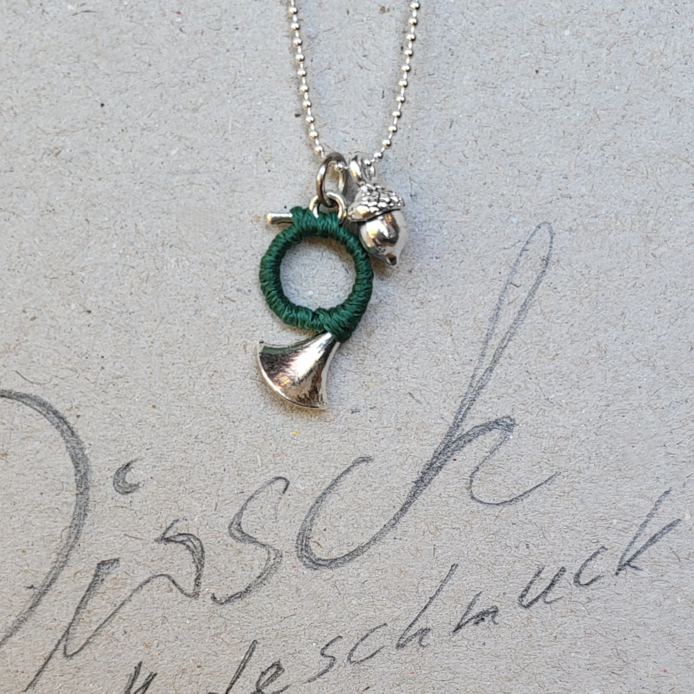 Der Jagdhornanhänger ist in braun und grün erhältlich.