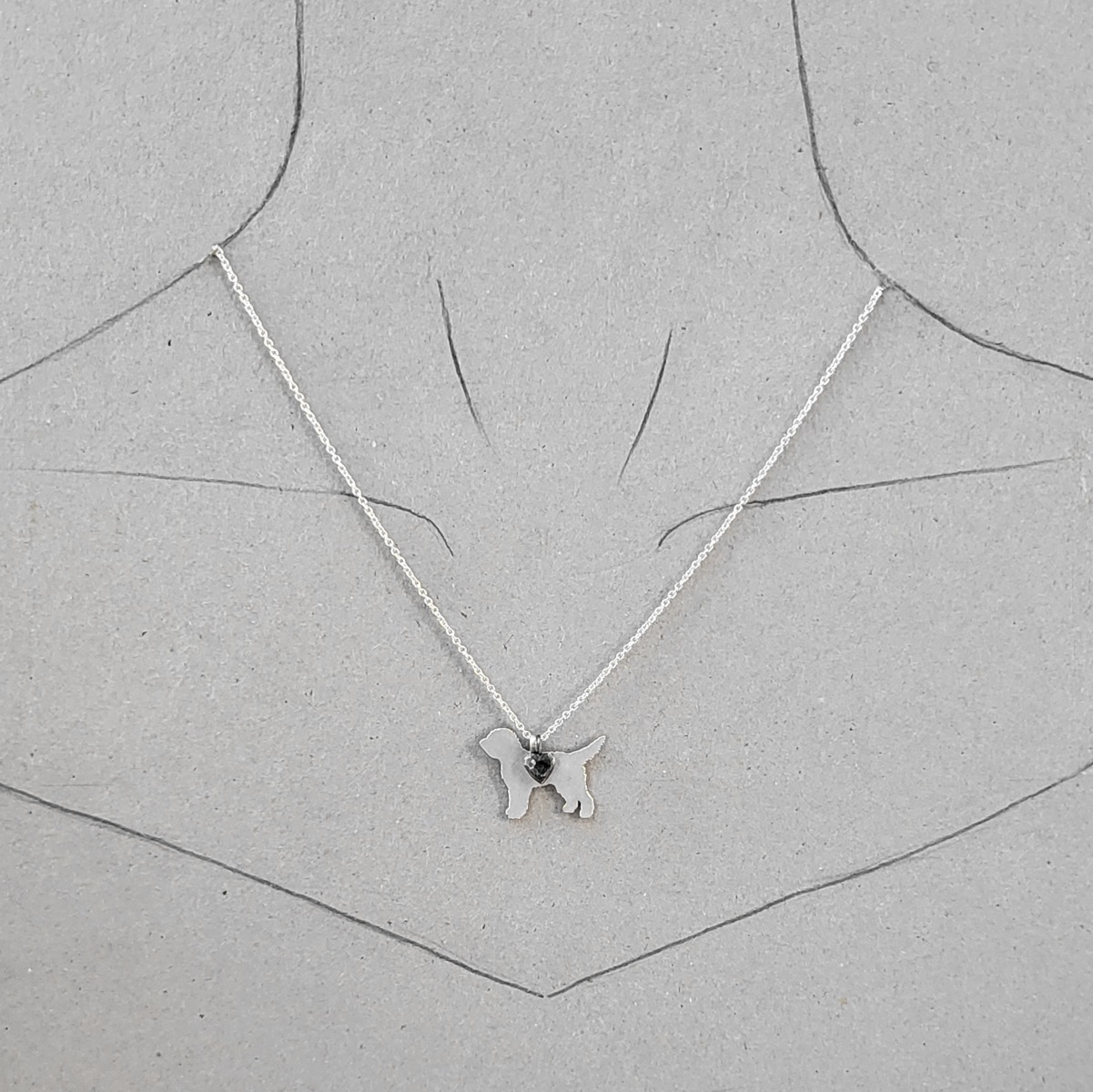 Vor der Silhouette hängt ein kleines geschwärztes Herz aus Silber, das eure besondere Verbindung symbolisiert. Dieser kleine Akzent gibt dem Anhänger Tiefe und wirkt wie ein zarter Schutz über deinem Hund.